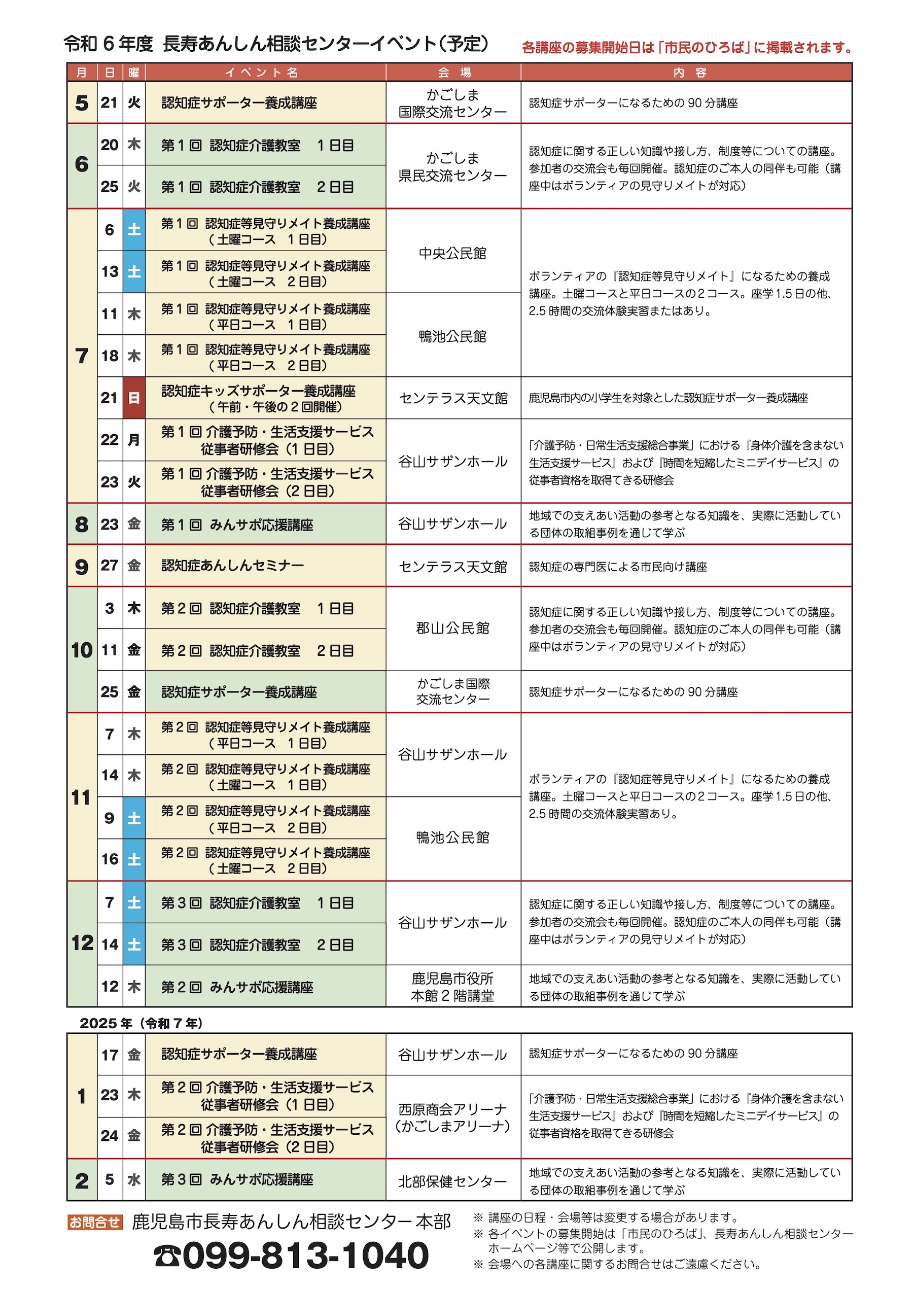 各種講座・研修会スケジュール